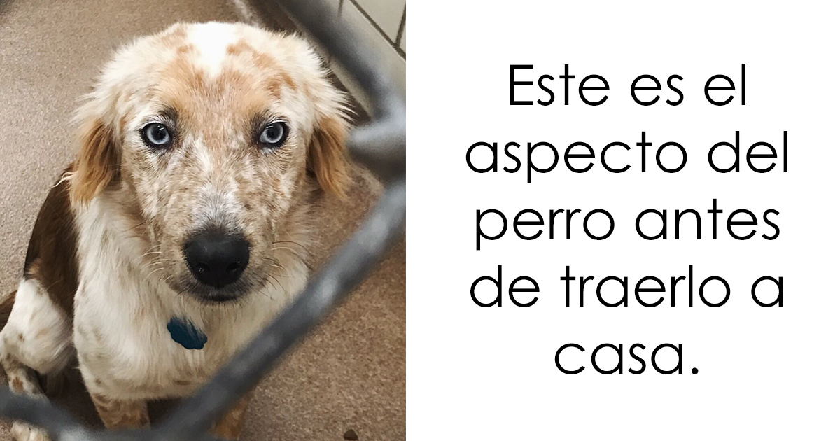 Este es Teddy, un cruce de Pastor ganadero, Pastor australiano y Golden retriever. Este es el aspecto que tenía en el refugio y después de ser adoptado